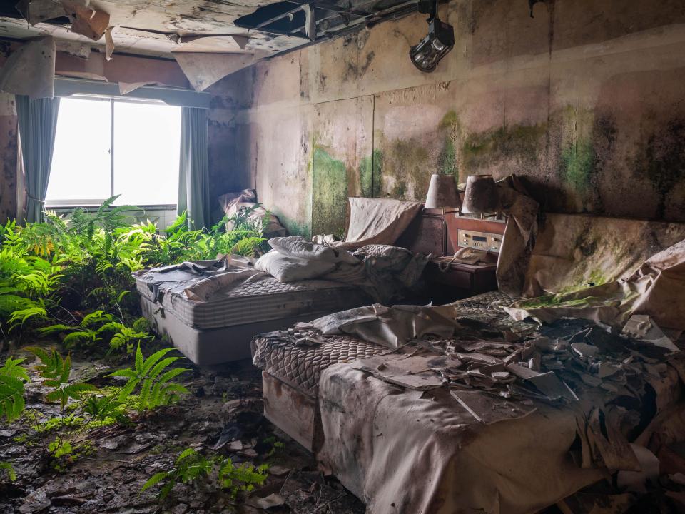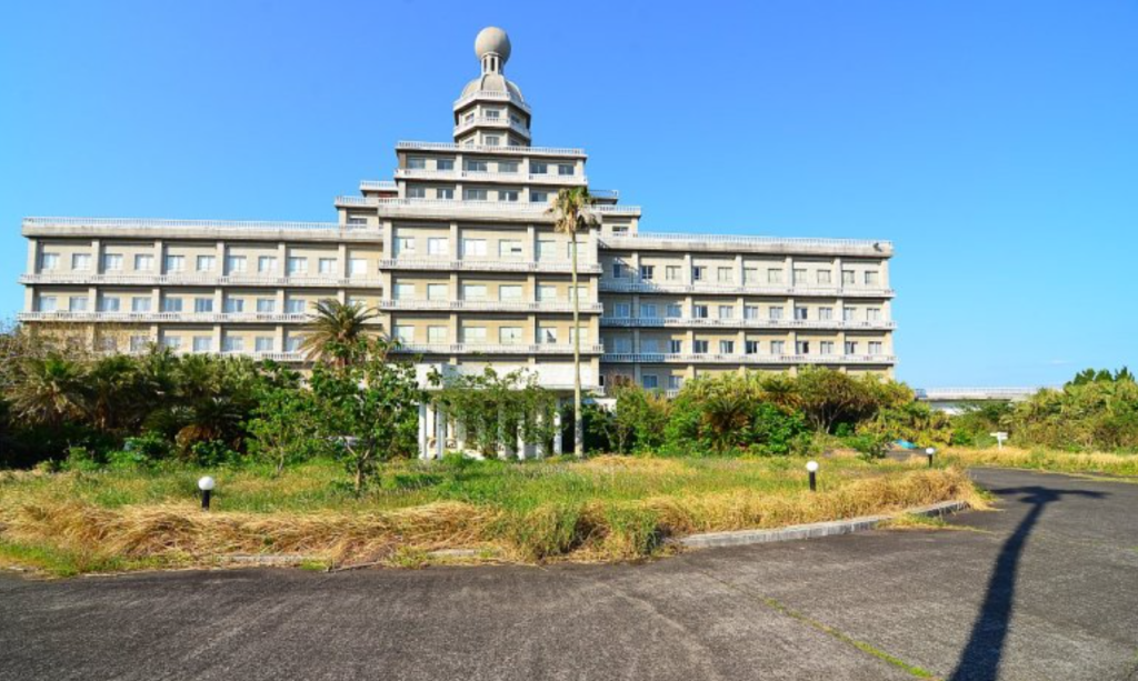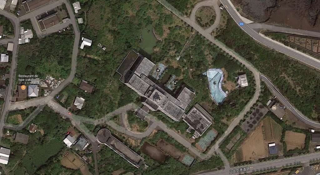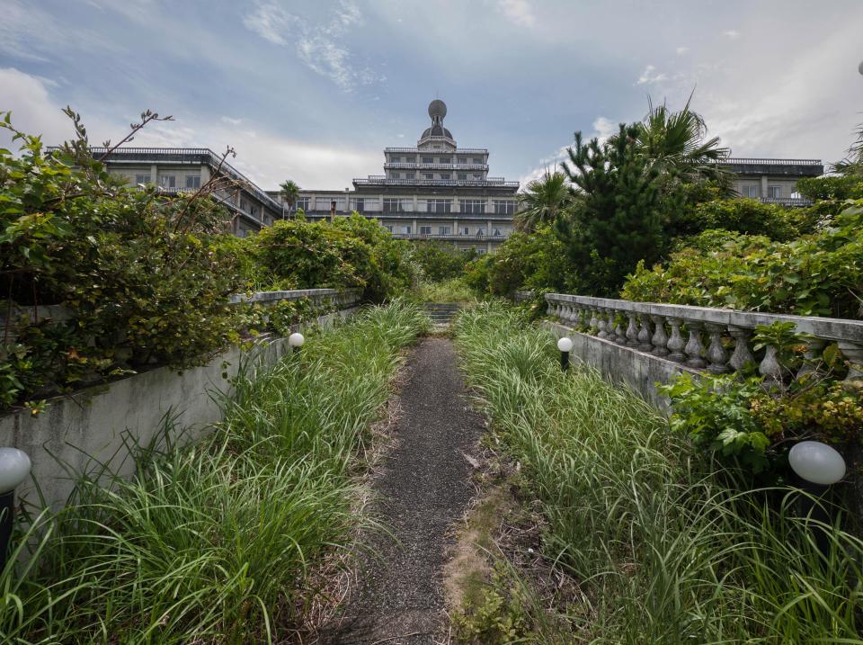 In 1996 the Hachijo Royal Hotel reopened as the Pricia Resort, which closed in August 2003 to re-open in 2004 as the Hachijo Oriental Resort. When the tourism boom came to an end, it struggled to attract guests and finally closed in 2006. Creeping vegetation is slowly conquering from the outside to the interior of the abandoned hotel adding to its deterioration.