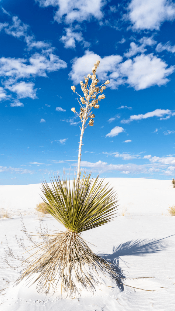 Wildflowers such as the Greenthread, Colorado Four O’Clock and Desert Mentzelia, and Globe Mallow make for a lovely contrast to the sparkling white sand. Be sure to contact the monument rangers ahead of time to find more specific information about wildflowers when visiting. It can vary based on the weather conditions.