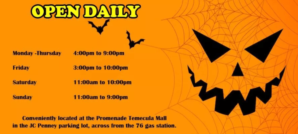 Open September 30th – October 30th Monday through Friday from 2 pm to 9 pm