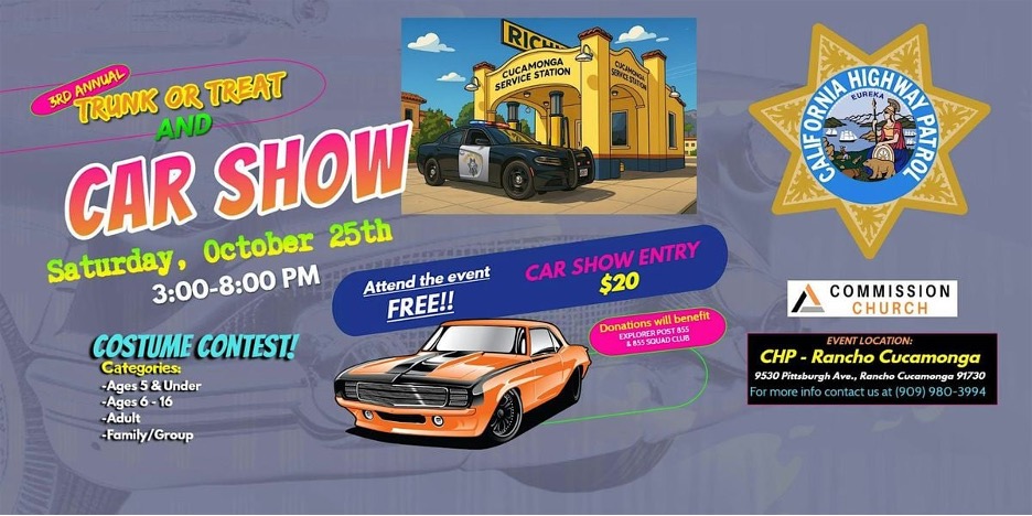 “Come to the 2024 CHP Rancho Cucamonga Area’s Trunk-or-Treat Car Show.